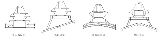 1、DWT-Ⅰ-Ⅱ-Ⅲ型屋頂風機屋面安裝示圖說明