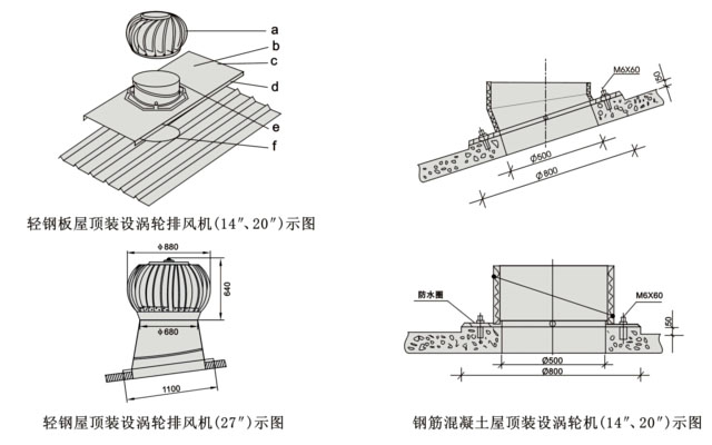 2、DWT-Ⅳ(無電機)屋頂渦輪排風機屋面安裝示圖說明